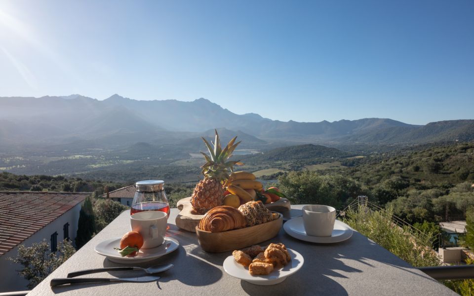 Les légumes de grand-père, les fromages de Fortuné, la charcuterie d’Olivier, les canistrelli de Josepha, l’huile d’olive d’Anna, les herbes aromatiques du domaine…
