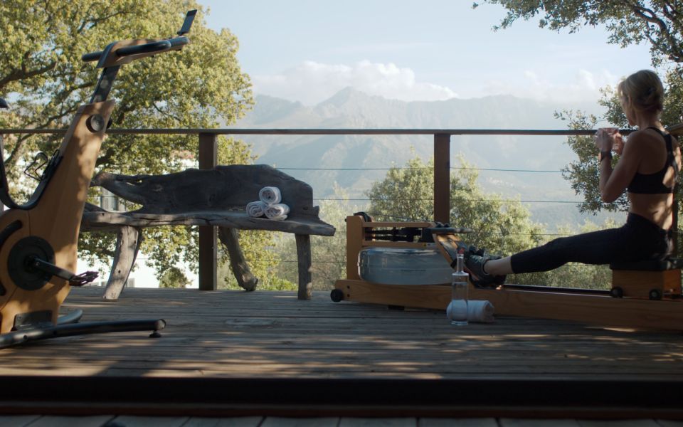 Dans une cabane en bois surplombant le maquis, vous trouverez à votre disposition des appareils de dernière génération et des cours interactifs.